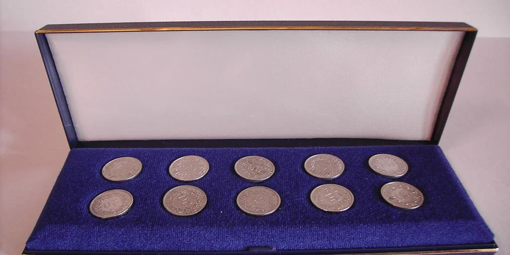 Wir fertigen Etuis für Münzen & Medaillen, auch Spezialanfertigungen mit persönlicher Widmung in Prägedruck auf dem Deckelkissen (für Geburtstage, Hochzeiten, Taufe etc.).